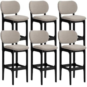 Amplamente sofisticado, o Kit 6 Banquetas Alta Bar Cozinha Sala Jantar Fixa Betta L02 Preto Linho Bege - Lyam Decor irá agregar ainda mais valor em sua decoração!! Sendo capaz de compor muito bem o ambiente, é produzido com materiais de excelente qualidade, a resistente estrutura em madeira de Taeda, na cor preto, conta com apoio para os pés (que garante maior segurança), além do assento e encosto estofados super confortáveis e convidativos, que são revestidos em tecido Linho, extremamente elegante.