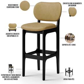 Amplamente sofisticado, o Kit 06 Banquetas Alta Bar Cozinha Sala Jantar Fixa Betta L02 Preto Couríssimo Casco Fendi - Lyam Decor irá agregar ainda mais valor em sua decoração!! Sendo capaz de compor muito bem o ambiente, é produzido com materiais de excelente qualidade, a resistente estrutura em madeira de Taeda, na cor preto, conta com apoio para os pés (que garante maior ), além do assento e encosto estofados super confortáveis e convidativos, que são revestidos em tecido couríssimo, extremamente elegante.
