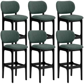 Amplamente sofisticado, o Kit 6 Banquetas Alta Bar Cozinha Sala Jantar Fixa Betta L02 Preto Linho Verde Musgo - Lyam Decor irá agregar ainda mais valor em sua decoração!! Sendo capaz de compor muito bem o ambiente, é produzido com materiais de excelente qualidade, a resistente estrutura em madeira de Taeda, na cor preto, conta com apoio para os pés (que garante maior ), além do assento e encosto estofados super confortáveis e convidativos, que são revestidos em tecido Linho, extremamente elegante.