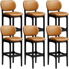 Amplamente sofisticado, o Kit 6 Banquetas Alta Bar Cozinha Sala Jantar Fixa Betta L02 Preto Couríssimo Whisky - Lyam Decor irá agregar ainda mais valor em sua decoração!! Sendo capaz de compor muito bem o ambiente, é produzido com materiais de excelente qualidade, a resistente estrutura em madeira de Taeda, na cor preto, conta com apoio para os pés (que garante maior segurança), além do assento e encosto estofados super confortáveis e convidativos, que são revestidos em tecido Couríssimo, extremamente elegante.