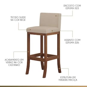 A Banqueta Alta Espanha é uma peça de destaque para qualquer ambiente, produzida em Madeira Maciça com acabamento em Verniz, garantindo durabilidade e elegância. Seu assento e encosto preenchidos com Espuma D26 e D23, respectivamente, oferecem o máximo conforto para refeições e momentos de descontração. Além disso, o revestimento em Tecido Suede confere um toque moderno e versátil. Seja na cozinha, sala de jantar ou espaço gourmet, essa banqueta é a escolha perfeita para agregar charme e funcionalidade ao lar!