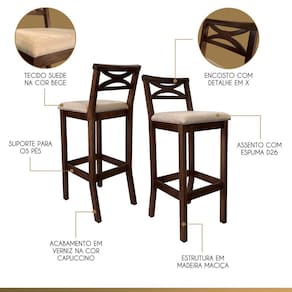 A Banqueta Alta com Encosto em X Madri Estofada vai deixar seu ambiente cheio de estilo. Possui um design atual, moderno e sofisticado. São ideais para bancadas, espaços gourmet, salão de festas, bares ou onde você preferir. Conta com uma estrutura resistente em madeira maciça de caixeta. Seu encosto possui detalhe em x, já seu assento é preenchido por espuma D23 e revestido em suede que proporcionam conforto e elegância.
