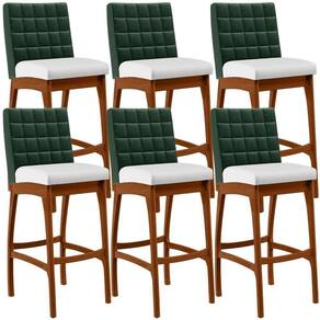 Entregando muita excelência, o Kit 6 Banquetas Altas Cozinha Sala Jantar Fixa Mila B04 Facto Verde Musgo Corano Branco - Lyam Decor é o complemento que faltava para deixar sua casa ainda mais extraordinária. Seu encosto com costura em padrão quadriculado e assento estofados, centralizam em si uma graciosidade estonteante, sem perder todo o conforto. A estrutura em madeira, na cor nozes, também é digna de notoriedade, por imprimir bastante personalidade a sua decoração. Vale ressaltar ainda, o apoio para os pés que garante maior segurança à banqueta.