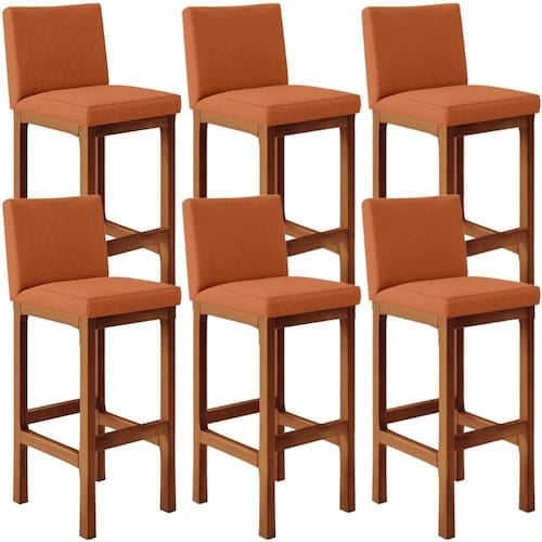 Conforto e estilo andam juntos sim! O Kit 06 Banquetas Altas Para Cozinha Sala De Jantar Fixa Alya L02 Tecido Terracota - Lyam Decor é o complemento que faltava para deixar sua casa ainda mais aconchegante. Seu encosto e assento estofados, centralizam o prazer de bons momentos compartilhados, trazendo ainda mais destaque para o conforto. A estrutura e o apoio para os pés, são responsáveis por garantir maior segurança à mesma. Pode ser acomodada em cozinha americana, ambientes integrados, espaços gourmets, bancadas ou em seu home bar, independente do lugar, ela desperta logo de cara o bom gosto e elegância, deixando tudo mais despojado, perfeita para criar um ambiente harmonioso e agradável para receber a família e amigos, sempre com muita receptividade!