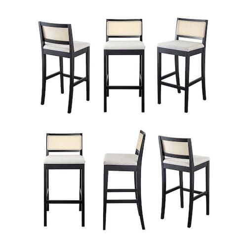 usuário. Altura do Conjunto: 105 cm Ambiente: null Ambiente Principal: Sala de Jantar Cor: Preto/Off White Informação Complementar: 6x Banqueta com Encosto e Apoio para Pés Tiê Preto/Off White Largura: 45 cm Altura: 105 cm Peso: 7 kg Profundidade: 46 cm Necessita Montagem: Sim