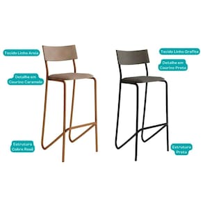 Banqueta Sala de Jantar Atlas 1747 Kit 6 Uni Preto/Linho Grafite/Courano Preto - Carraro Abaixo segue os produtos do KIT: Banqueta Sala de Jantar Atlas 1747 Kit 6 Uni Preto/Linho Grafite/Courano Preto - Carraro