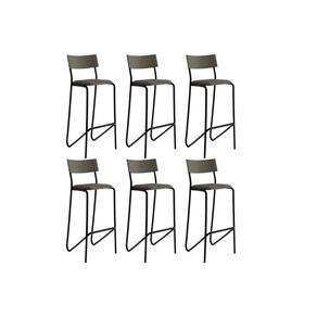 Kit 6 Banquetas De Cozinha Atlas 1747 6 Uni Preto/linho Grafite/courano Preto - Carraro