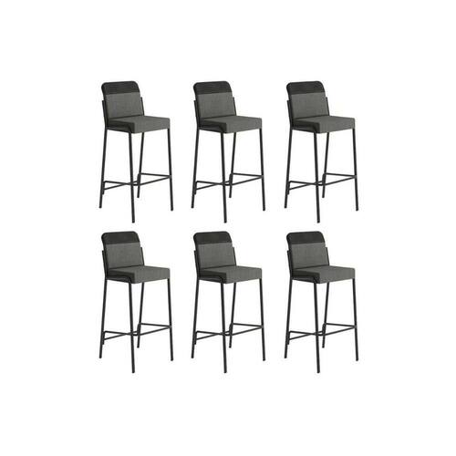 Kit 6 Banquetas De Cozinha Duo 1753 6 Un Preto/linho Grafite/courano Preto - Carraro