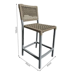 Kit 6 Banquetas França Em Corda Náutica E Base Em Alumínio Cinza Para área Gourmet Rami - Cor: Bege