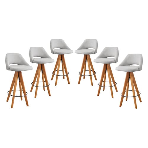 A principal vantagem da banqueta Nicole é o conforto que ela oferece por ser estofada, proporcionando uma superfície de assento muito agradável. Além disso, possui base giratória em madeira, isso é especialmente útil em espaços onde você precisa alcançar diferentes áreas sem sair do assento. Pode ser usada em uma variedade de configurações, desde cozinhas e bares domésticos até áreas de espera em escritórios ou estabelecimentos comerciais. Possui estrutura em mdf prensado, chapas de ferro interligando o assento com o encosto e travamento da estrutura por grampos fixados com grampeadores pneumáticos. Espuma D28 soft no assento e no encosto. Acabamento da Estrutura: Não se Aplica Altura do assento até o chão: 80 cm Altura do Encosto: 31 cm Altura Regulável: Não Ambiente Principal: Cozinha Complexidade da Montagem: Baixa: pode ser montado por uma pessoa sozinha Cor: Cinza Cor do Produto: Cinza Dobrável: Não Escala de Brilho: Semi-Brilho Itens Inclusos: 6 Banquetas + Parafusos + Manual de Montagem Linha ou Coleção: Nicole Manual de Montagem e Instalação: https://product-hub-prd.madeiramadeira.com.br/974124/documents/2ec938bf-6d7b-4646-8259-21edb36073aa7basebanquetademadeiralink.pdf Marca: Zurc Decor Material do Assento: MDF Material do Encosto: MDF Necessita Montagem: Sim Origem do Produto: Nacional Peso: 15 kg Possui Almofada no Assento: Não Possui Apoio Para os Pés: Sim Possui Encosto: Sim Possui Rodízio: Não Recomendações de Uso, Manutenção e Limpeza: Utilizar aspirador de pó, escova com cerdas macias ou limpeza a seco. Não utilizar produtos químicos, abrasivos ou limpeza a vapor. Evitar exposição prolongada ao sol. Sistema de Montagem: Parafusos Tipo de Assento: Fixo Tipo de Encosto: Fixo Marca: Zurc Decor