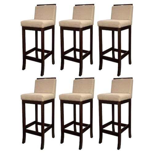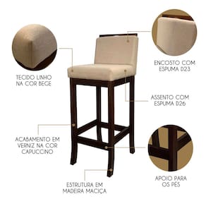 CARACTERÍTICAS TÉCNICAS: - Produzido em Madeira Maciça de Reflorestamento - Acabamento em Verniz na cor Capuccino - Assento Preenchido com Espuma D26 - Encosto Preenchido com Espuma D23 - Revestimento em Suede na cor Bege *Indicada para Bancadas/Mesas com Alt. 90/95cm *Kit Composto por SEIS Banquetas Turim *PRODUTO ENVIADO MONTADO.
