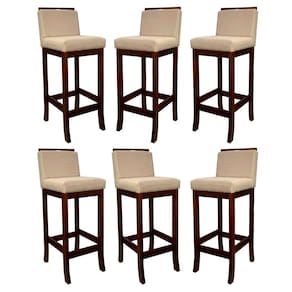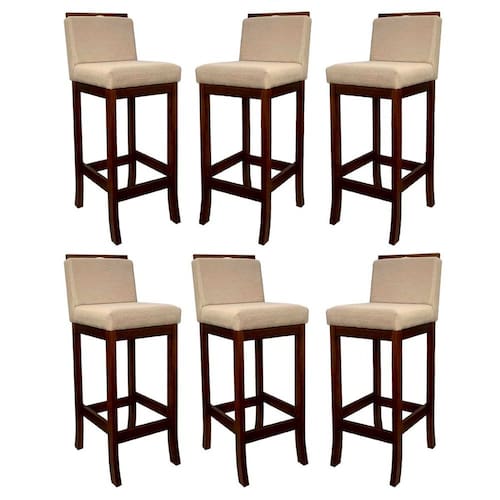 CARACTERÍTICAS TÉCNICAS: - Produzido em Madeira Maciça de Reflorestamento - Acabamento em Verniz na cor Castanho - Assento Preenchido com Espuma D26 - Encosto Preenchido com Espuma D23 - Revestimento em Suede na cor Bege *Indicada para Bancadas/Mesas com Alt. 90/95cm *Kit Composto por SEIS Banquetas Turim *PRODUTO ENVIADO MONTADO.