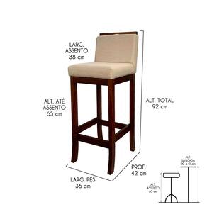 INFORMAÇÕES TÉCNICAS: Altura Total: 92 cm Altura até Assento: 65 cm Altura até Travessa: 13 cm Altura Encosto: 35 cm Largura Assento: 38 cm Largura Estrutura: 36 cm Profundidade Total: 42 cm Profundidade Assento: 41 cm Peso: 7 kg INFORMAÇÕES ADICIONAIS:ATENÇÃO: Móvel produzido em madeira maciça natural podendo ocorrer mudança no tom da madeira conforme o produto;*Conferir se o produto está de acordo com o que comprou, produto danificado não será aceito troca;**As imagens ambientadas são meramente ilustrativas e podem apresentar itens que não compõe o produto. As cores do produto podem variar de acordo com o monitor, a iluminação do ambiente ou sua percepção visual;***Limpeza deve ser feita com pano macio e seco ou levemente umedecido com água e sabão neutro. Não devem ser utilizados abrasivos como palha de aço e objetos cortantes;Garantia para defeitos de fabricação conforme Código de Defesa do Consumidor. Marca: CCS Interiores