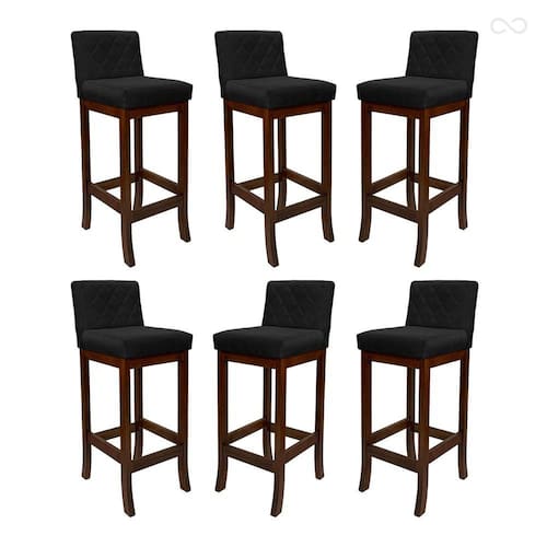 Kit 6 Banquetas Média para Cozinha Tóquio Madeira Maciça Matelassê Suede Preto CCS