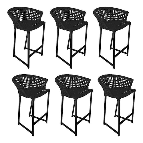 Kit 6 Banquetas Reis Em Corda Náutica E Base Em Alumínio Preta Para área Gourmet - Externa Preta - Cor: Preto Apresentamos a nossa deslumbrante Banqueta em Corda Náutica Reis, uma peça de mobiliário que combina perfeitamente funcionalidade e design sofisticado. São uma adição excepcional para qualquer espaço da sua casa, desde a sala de estar até à varanda.Características:Tipo: Banqueta Modelo: Reis Cor Base: Preto Cor Corda: Preto Medidas:Altura: 97cmLargura: 49cmComprimento: 45cmATENÇÃOIMAGENS MERAMENTE ILUSTRATIVAS REALIZADO EDIÇÃO, PODENDO HAVER UMA PEQUENA VARIAÇÃO DE COR DEPENDENDO DE CADA TELA OU MONITOR.Kit 6 Banquetas Reis em Corda NÃutica e Base em AlumÃnio Preta para Ãrea Gourmet - Externa Preta Marca: Guimaraes Store Ean: 7895037641936