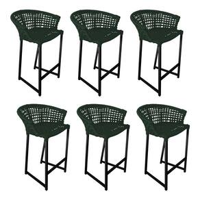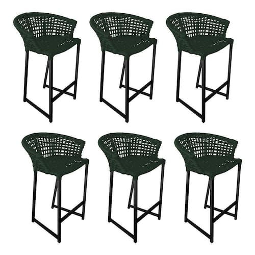 Kit 6 Banquetas Reis Em Corda Náutica E Base Em Alumínio Preta Para área Gourmet Verde Musgo Verde - Preto