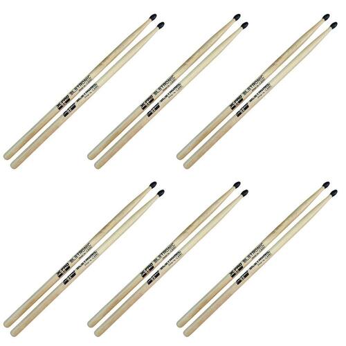 Kit 6 Baqueta 5A Bateria Eletronic Ponta Nylon Marfim