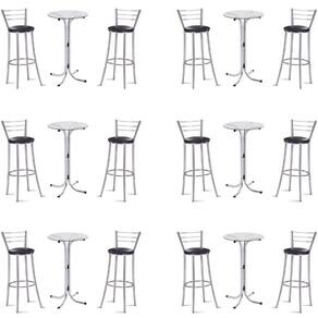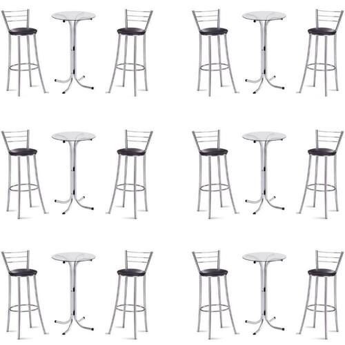 Kit 6 Bistros Com 6 Banquetas Cromadas-gatmagazine O conjunto Bistrô com banquetas GatMagazine além de bonito e charmoso traz harmonia para o seu ambiente!O Bistrô e a banqueta são feitos em aço cromado que traz mais resistência ao produto,O tampo do Bistrô é em vidro de 6mm com 60 centimetros de diamêtro.O produto é próprio para cozinhas,sala de jantar ou espaços gourmet. Marca: NOVA DECOR