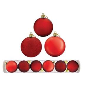 -6 Bolas Natal Mista Glitter, Fosca, Vermelha 7cm - Master Christmas