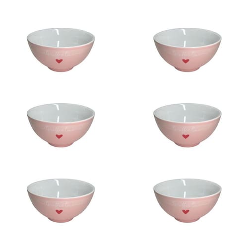 Kit 6 bowl lamour 440ml rosa etilux pcln173RS Bowl em porcelana Lamour rosa com capacidade para 440 ml. Observação: As cores dos produtos podem sofrer variações em função das características do monitor e do ambiente durante sua visualização. Matéria prima: Porcelana. Medida aproximada do produto: Compr. X Larg. X Alt. : 12x12x07 cm. Ean: 7897318200054