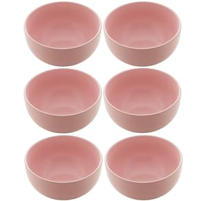 Kit 6 Bowls de Cerâmica Cumbuca 680ml Lyor 14,5x8,5cm Tigela Sopa Sobremesa Salada Rosa