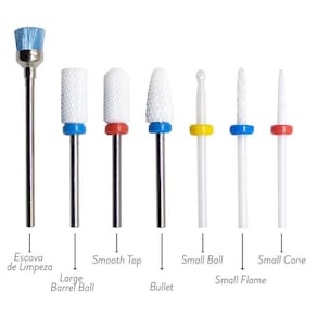 01 - Broca de Cerâmica Profissional Large Barrel Ball 01 - Broca de Cerâmica Profissional Smooth Top 01 - Broca de Cerâmica Profissional Bullet 01 - Broca de Cerâmica Profissional Small Ball 01 - Broca de Cerâmica Profissional Small Flame 01 - Broca de Cerâmica Profissional Small Cone 01 - Broca de Limpeza Profissional 01 - Caixa de Acrílico para Armazenamento