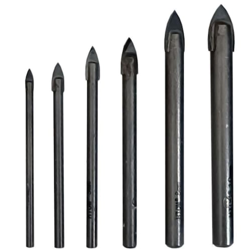 Kit com 6 Brocas para Furar Vidro de 3 a 10mm Porcelanato Cerâmica Metal Duro Profissional HTOMBroca para Furar Vidro HTOM Indicada para furação de: vidros exceto vidros temperados , azulejos, pastilhas, cerâmicas, louças e porcelanas.- Marca: HTOM- 1 Broca para Vidro 3mm x 60mm- 1 Broca para Vidro 4mm x 60mm- 1 Broca para Vidro 5mm x 64mm- 1 Broca para Vidro 6mm x 64mm- 1 Broca para Vidro 8mm x 76mm- 1 Broca para Vidro 8mm x 76mm- Ponta de metal duro resistente- Indicada para furação de: vidros exceto vidros temperados , azulejos, pastilhas, cerâmicas, louças e porcelanas.- Para uso em furadeiras- Garantia de qualidade