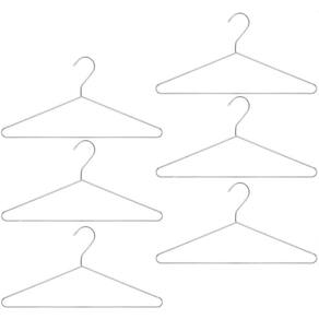 Garantia: 90 dias / Peso: 420g / Cor predominante: Cromado / Ref: 10033X6 Dimensões de cada: 42cm (C) x 0,50cm (L) x 17,5cm (A); Material: aço cromado; Capacidade: 1 peça de roupa por cabide; Conteúdo: 6 cabides.