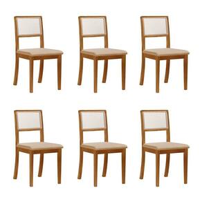 Kit 6 Cadeira Estofada Jantar Rubi Linho Madeira Maciça bege