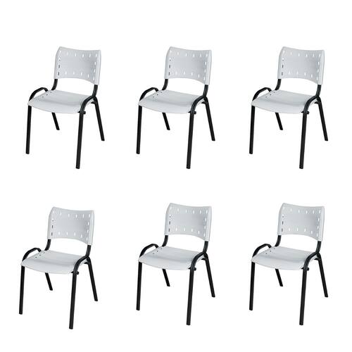Kit 6 Cadeira ISO Tubo Oblongo Aço Industrial Empilhavel - Branco