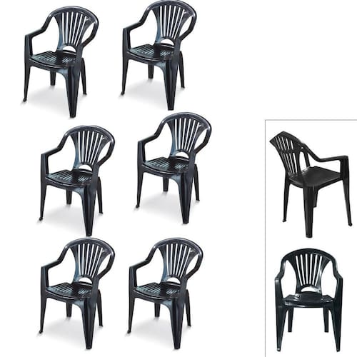 Kit 6 Cadeira Poltrona Plástico Vime Multiuso Lazer Preta