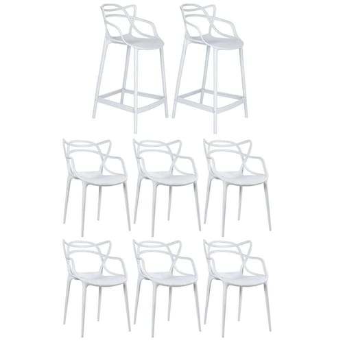 • 6 cadeiras + 2 banquetas médias Masters Allegra