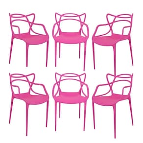 Kit 6 Cadeiras Allegra Estrutura em Plástico Rosa para Ambientes Internos e Externos Design Moderno