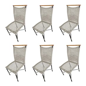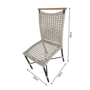 Kit 6 Cadeiras Anne Corda Náutica Detalhe em Madeira Base Alumínio Preto/areia - Bege