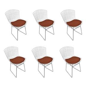AS IMAGENS SÃO MERAMENTE ILUSTRATIVAS E PODEM SOFRER VARIAÇÕES DE COR E PEQUENOS DETALHES DE ACORDO COM O SEU MONITOR, ILUMINAÇÃO DO AMBIENTE E ATÉ MESMO A SUA PERCEPÇÃO VISUAL.Kit 6 Cadeiras Bertoia Cromada com Assento SintÃtico Marrom