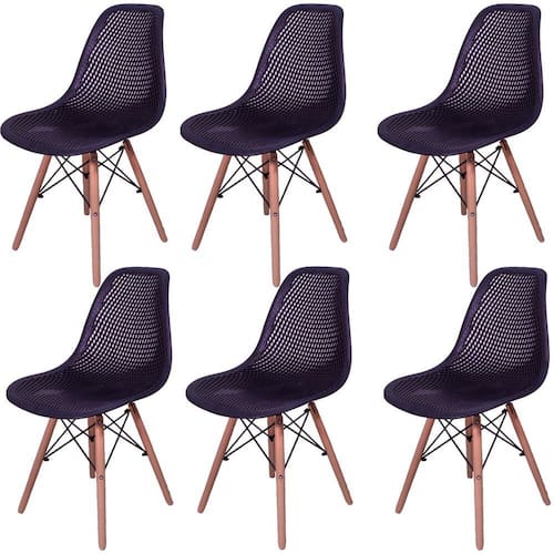 Kit 6 Cadeiras Charles Eames Eifell Furadinha - Preto