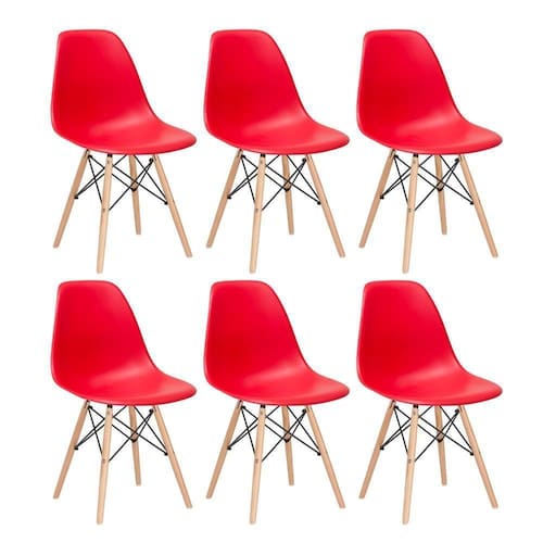 Kit 6 Cadeiras Charles Eames Eiffel Dsw Com Pés De Madeira Clara Vermelho