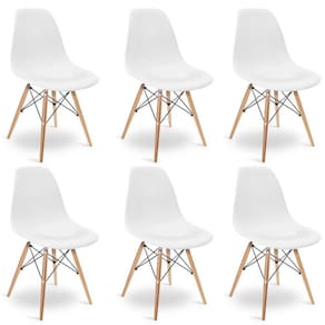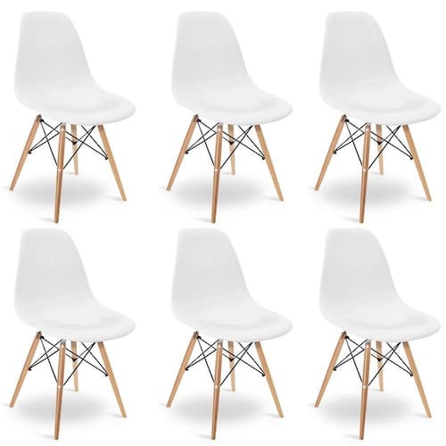 Madeira PinusKit 6 Cadeiras Charles Eames Eiffel Wood Design Branca