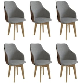 Kit 6 Cadeiras Couríssimo e Linho para Sala de Jantar Anne Yescasa Cinza/Marrom