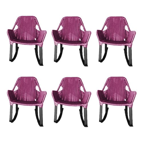 IMAGENS MERAMENTE ILUSTRATIVAS REALIZADO EDIÇÃO, PODENDO HAVER UMA PEQUENA VARIAÇÃO DE COR DEPENDENDO DE CADA TELA OU MONITOR.Kit 6 Cadeiras de BalanÃo Athenas Corda NÃutica Base em AlumÃnio Preto/rosa