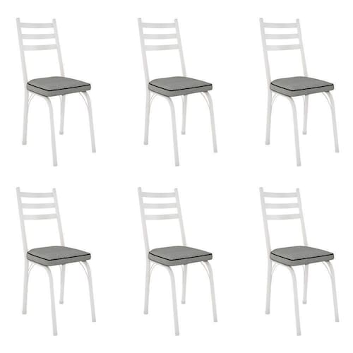 Kit 6 Cadeiras De Cozinha Luisiana Estampado Platina Pés De Ferro Branco - Pallazio