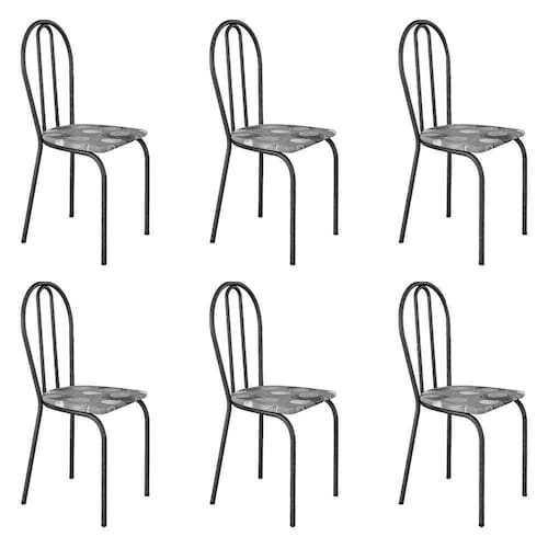 Kit 6 Cadeiras De Cozinha Texas Estampado Pará Pés De Ferro Cromo Preto - Pallazio