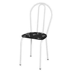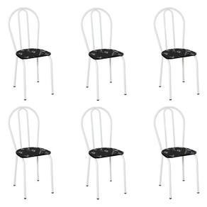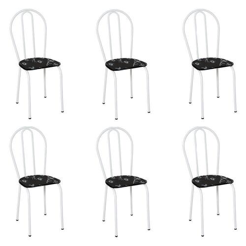 Kit 6 Cadeiras De Cozinha Texas Estampado Preto Florido Pés De Ferro Branco - Pallazio
