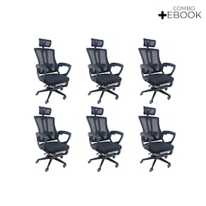 A limpeza pode ser realizada com um pano úmido e detergente neutro, preservando a estrutura e o acabamento em tela Mesh, garantindo a durabilidade e a elegância da cadeira.