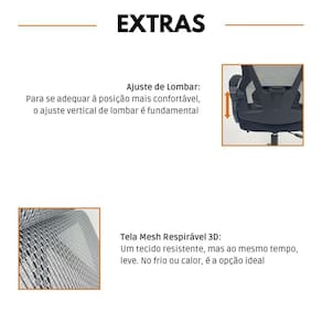 Ergonomia e Suporte: Encosto com ajuste lombar para melhor postura durante o uso.