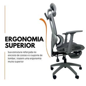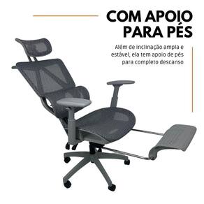 A limpeza pode ser realizada com um pano úmido e detergente neutro, garantindo a preservação do acabamento em Tela Mesh Nylon e a durabilidade da cadeira.