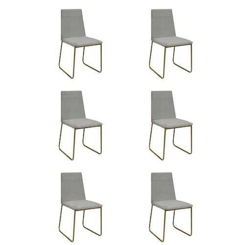 Kit 6 Cadeiras De Jantar Cozinha Industrial Lexa Veludo - élpis Móveis Cinza Dourada