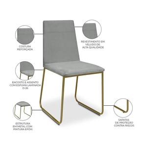Kit 6 Cadeiras De Jantar Cozinha Industrial Lexa Veludo Élpis Móveis Cinza Dourada