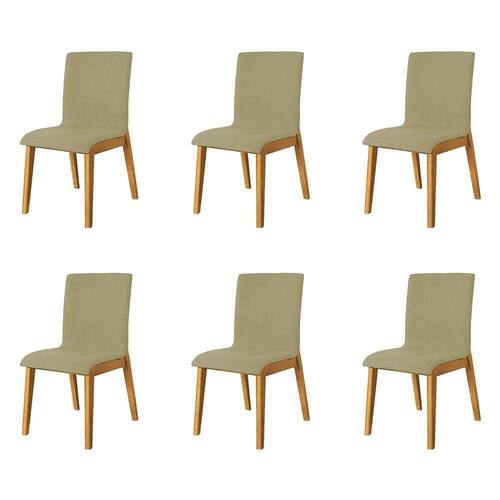 Kit 6 Cadeiras De Jantar Diamante Estofadas Em Veludo Bege Base Madeira Maciça Mel - Cor: Bege