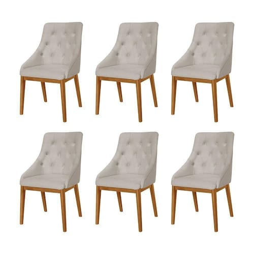Kit 6 Cadeiras De Jantar Elisa Nobre Estofada Capitonê Linho Bege Base Madeira Maciça Mel A Cadeira Elisa possui formato anatômico e vai deixar sua sala de jantar muito mais bonita e sofisticada. Mantendo todo conforto que o móvel precisa ainda conta com enorme elegância proporcionada pelo Capitonê. Tipo: Cadeira Modelo: Elisa Cor: Bege Cor Base: Mel Tecido: Linho Medidas: Altura: 90cm Largura: 55cm Comnto: 58cm ATENÇÃO IMAGENS MERAMENTE ILUSTRATIVAS REALIZADO EDIÇÃO, PODENDO HAVER UMA PEQUENA VARIAÇÃO DE COR DEPENDENDO DE CADA TELA OU MONITOR. Marca: Home Nobre